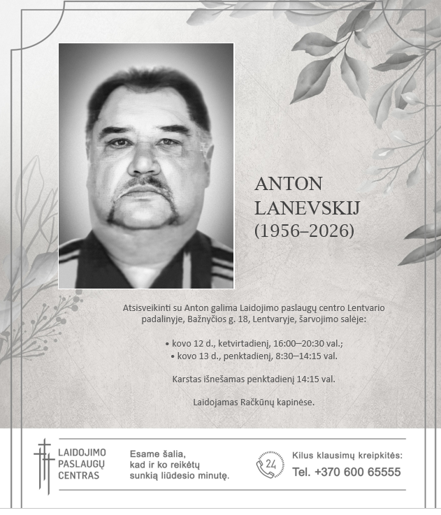 Su giliausiu liūdesiu pranešame, kad netekome ANTON LANEVSKIJ (1959.06.13–2026.03.11).