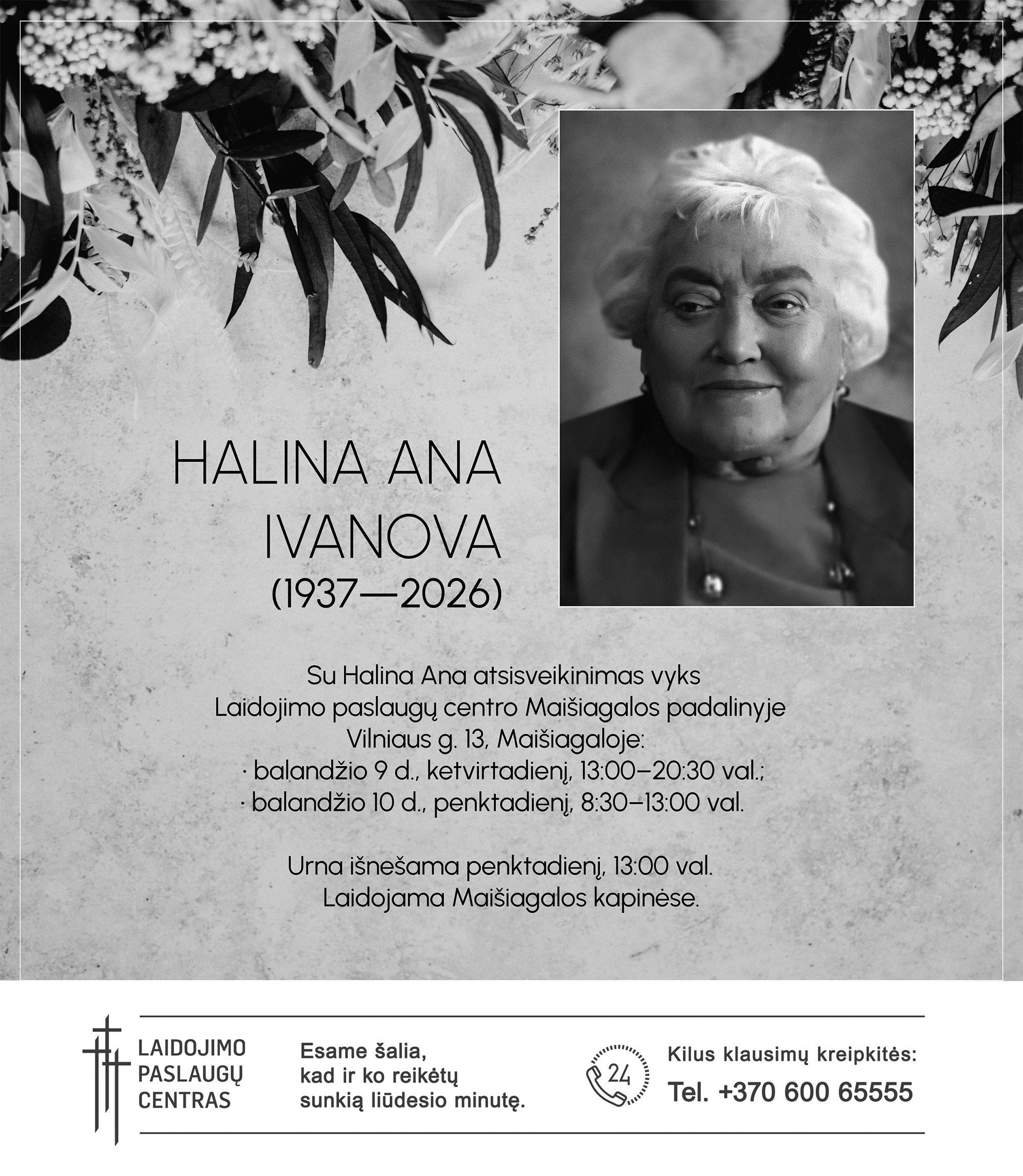 Su liūdesiu ir pagarba pranešame, kad netekome HALINOS ANOS IVANOVOS (1937 05 10–2026 03 10).