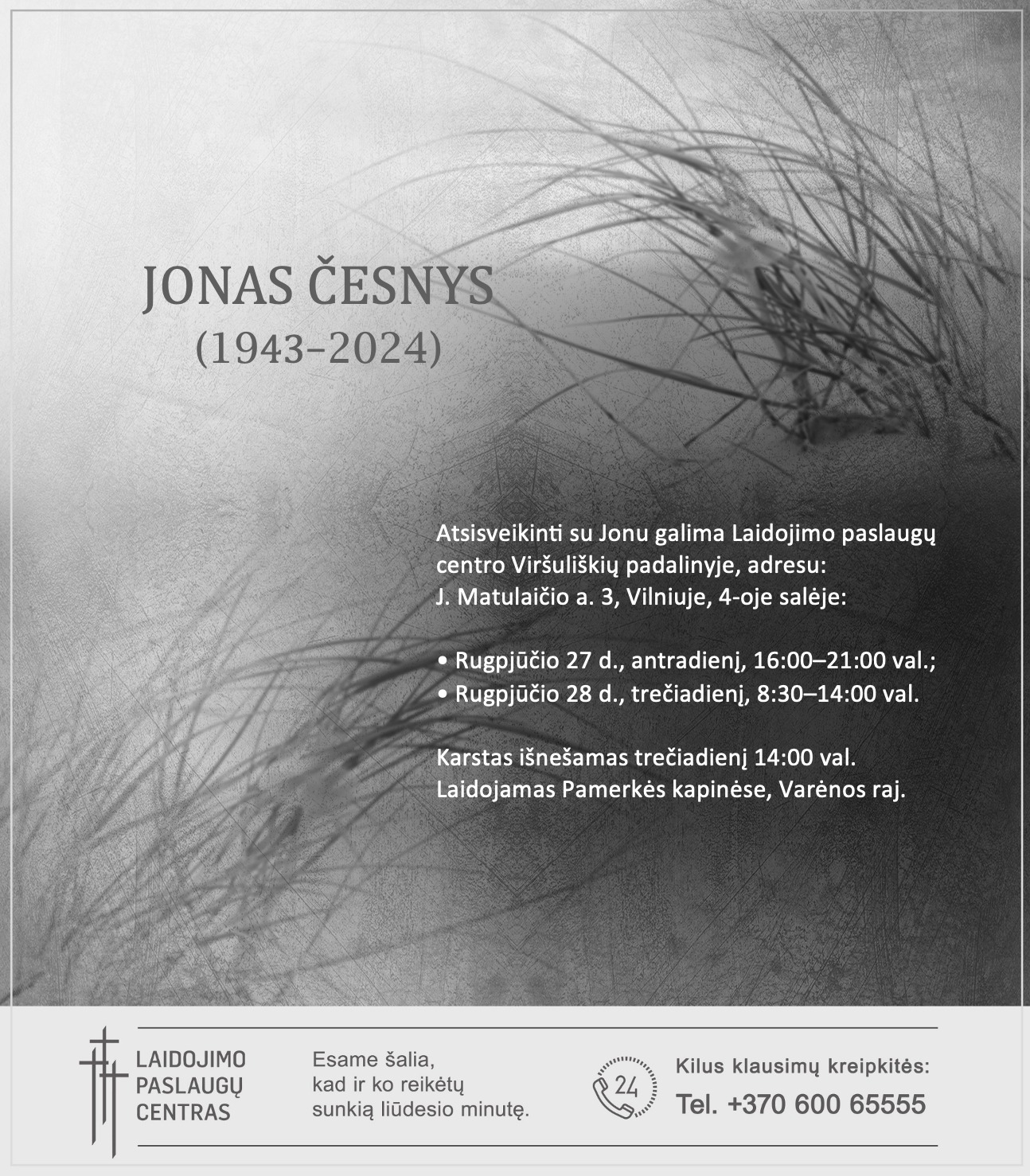 Su Jonu atsisveikinimas vyks Laidojimo paslaugų centro Viršuliškių padalinyje, adresu: J. Matulaičio a. 3, Vilniuje, 4-oje salėje: