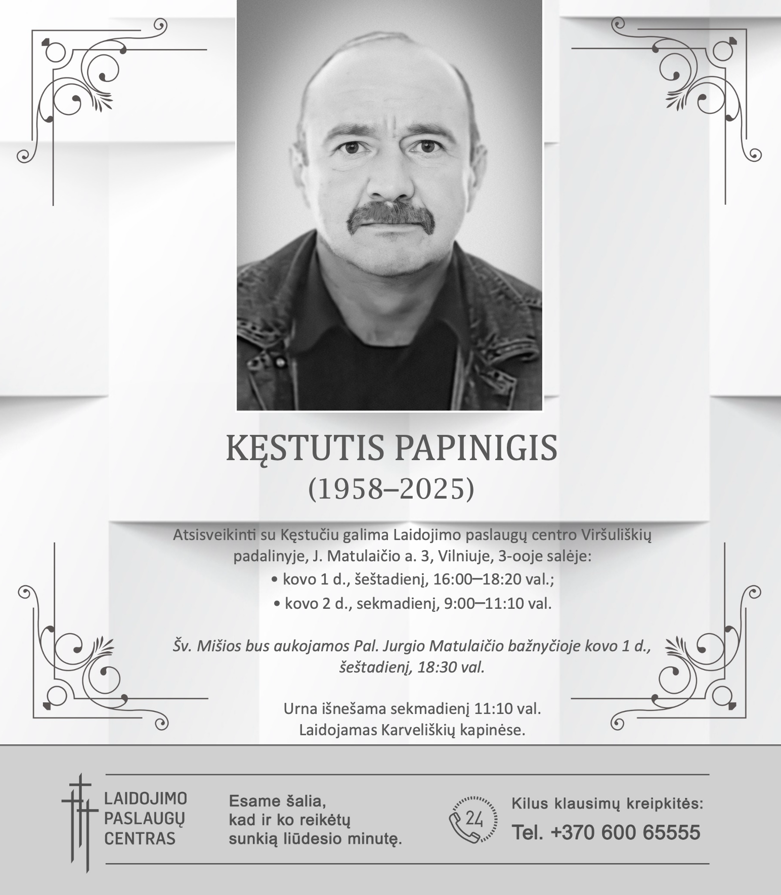 Su giliu liūdesiu pranešame, kad šiomis dienomis užgeso KĘSTUČIO PAPINIGIO (1958.02.24–2025.02.26) gyvybė.