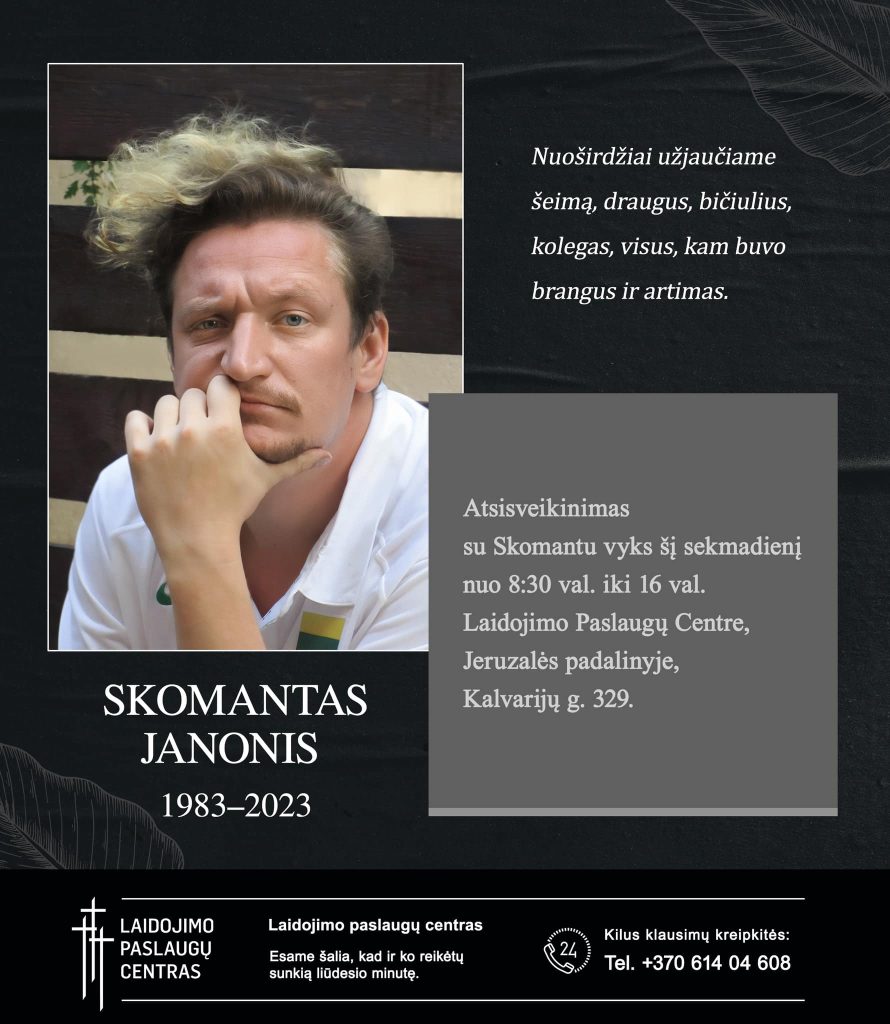 Su giliausiu liūdesiu pranešame, kad netekome ANDRIAUS ŠORINO (1986–2023).Nuoširdžiai užjaučiame šeimą, draugus, kolegas, giminaičius, kaimynus, visus, kam teko savo gyvenimo kely sutikti, pažinti, kam buvo artimas, mylimas ir brangus.Artimiesiems – stiprybės ir šviesių prisiminimų,...