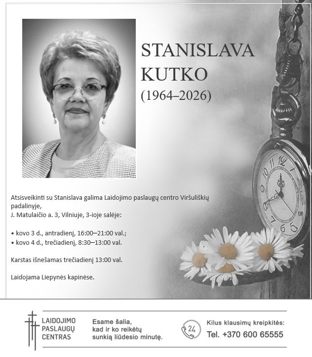 Atsisveikinti su Stanislava galima Laidojimo paslaugų centro Viršuliškių padalinyje, J. Matulaičio a. 3, Vilniuje, 3-ioje salėje: