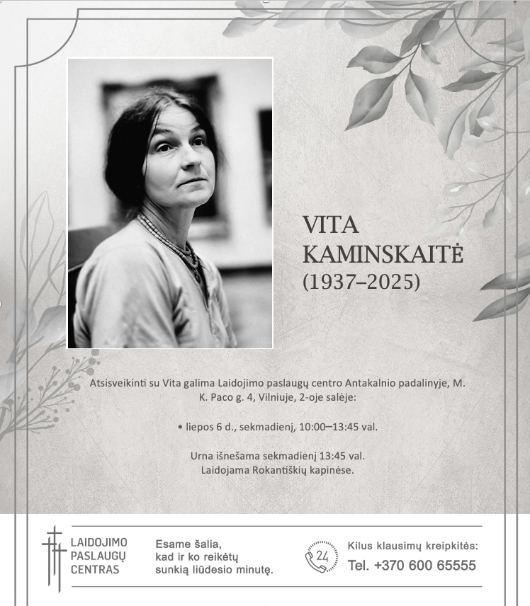 Su giliausiu liūdesiu pranešame, kad netekome VITOS KAMINSKAITĖS (1937.08.22–2025.07.01).