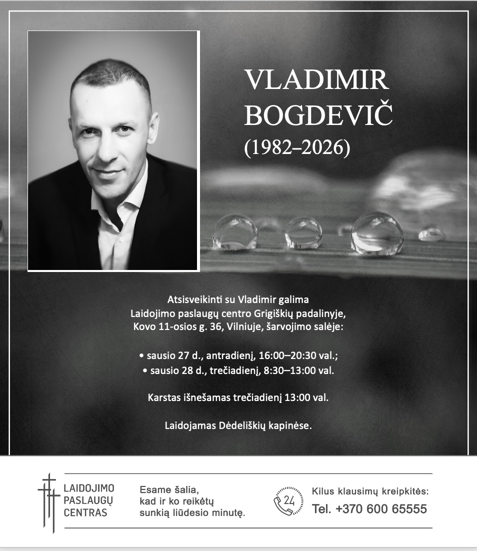 Su giliausiu liūdesiu pranešame, kad netekome VLADIMIR BOGDEVIČ (1982.03.13–2026.01.25).